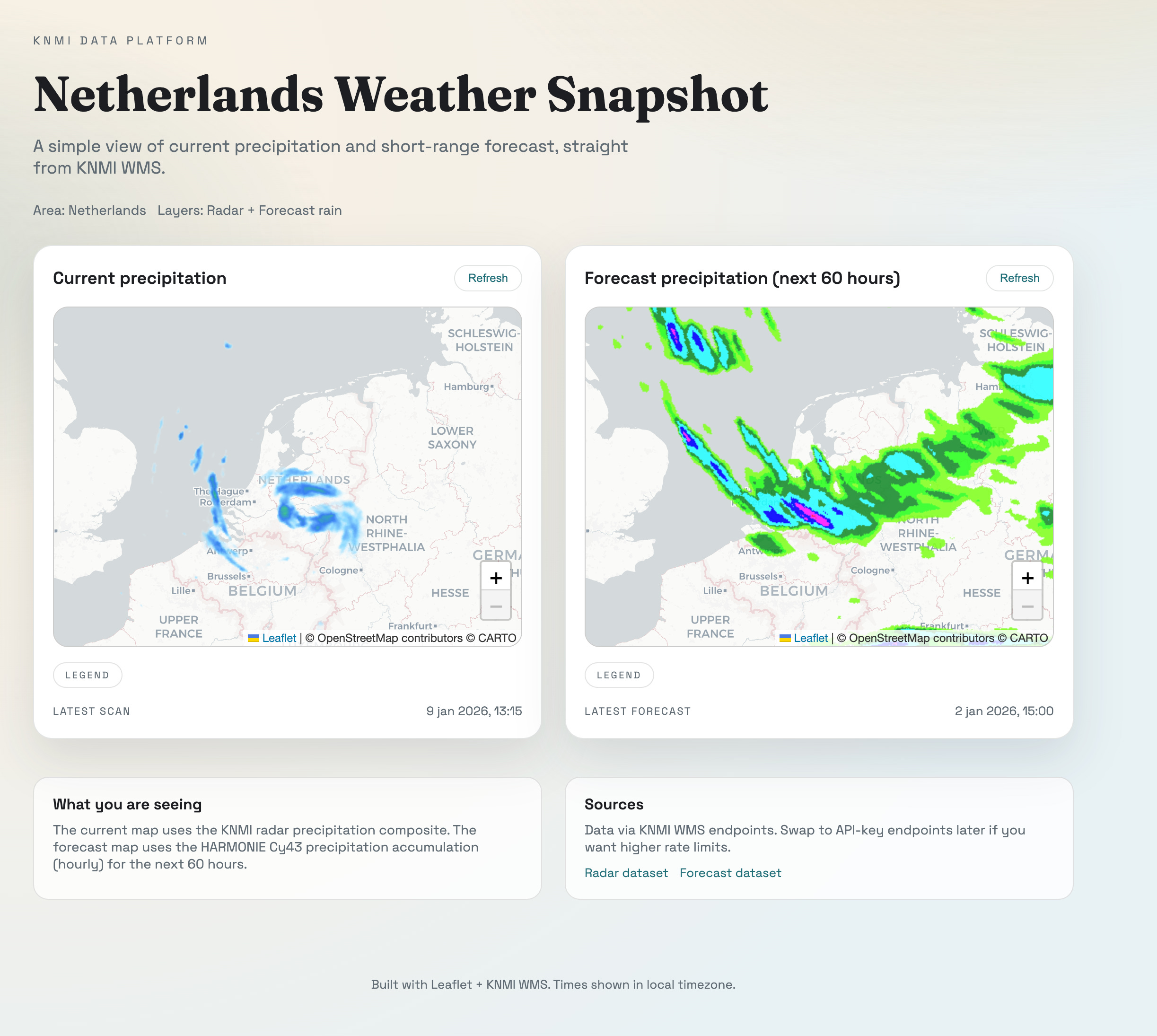 I have zero plans of open sourcing this or otherwise making it available, because it’s a fun exercise to do yourself! All I had to do was sign up for an API key at knmi.nl and make it available in a repository.