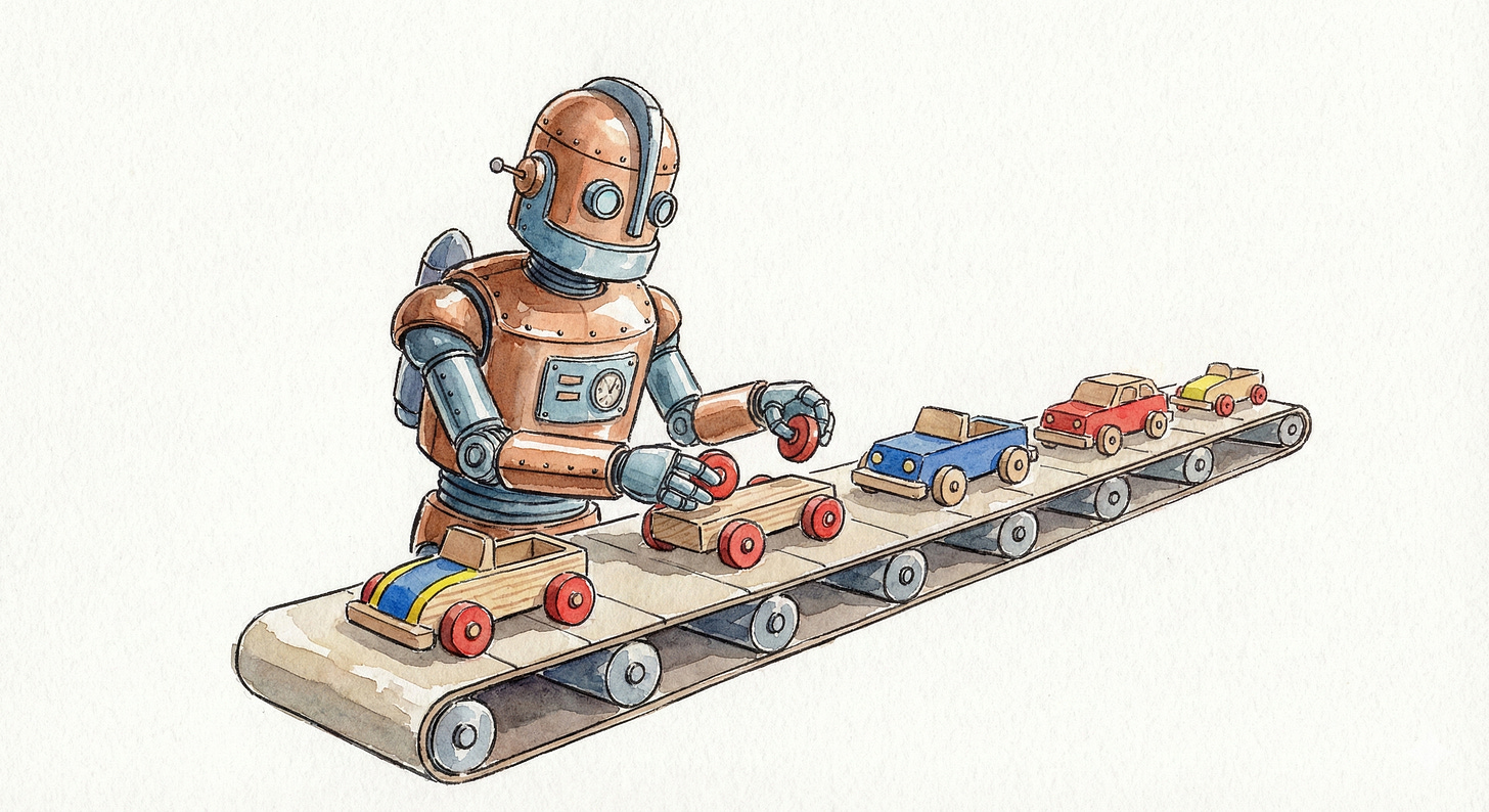 Recently, I spoke to a friend who has many people doing these adminstrative tasks. They felt frustrated that their work isn’t getting as much love from engineering as some other areas of the business. They hired people to work on automation, but it wasn’t moving the needle to the degree they hoped for. My suggestion to them was to hire engineers instead of admin people. Charlie’s dad is getting replaced with a robot engineer. But what happens to Charlie’s dad in this situation?